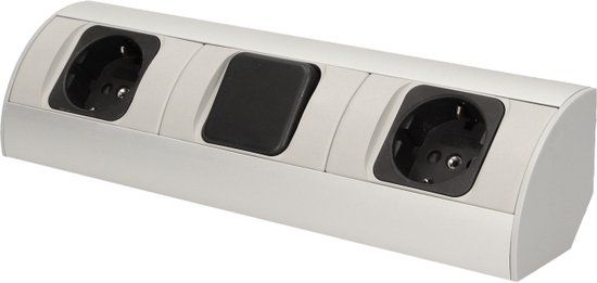 ORNO Stekkerdoos met schakelaar en overspanningsbeveiliging - Verdeelstekker horizontaal - Stekkerblok bureau - Verdeeldoos met snoer 0.5 - Zilver - Stekkerdozen en piekspanningsbeveiliging