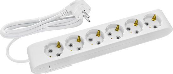 Stekkerdoos - Verlengsnoer - Decon - 6 Stopcontacten - 1.5 Meter - Randaarde - Wit - Stekkerdozen en piekspanningsbeveiliging