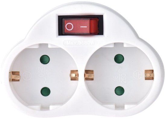Bekijk productPerel Verdeelstekker met schakelaar - 2 stopcontacten - wit - Stekkerdozen en piekspanningsbeveiliging