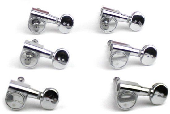 - Chroom. - Mechaniek voor elektrische gitaar. - 6 stuks, inline. - Gesloten