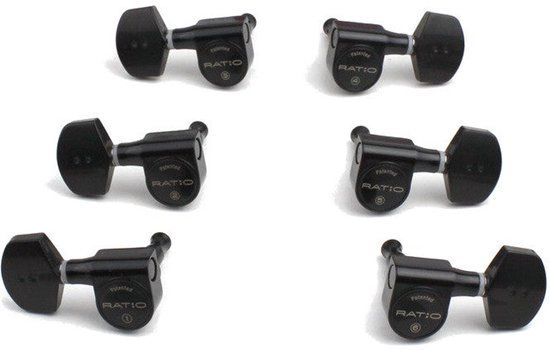- Zwart - Mechaniek voor elektrische gitaar. - 6 stuks, 3 3. - Gesloten