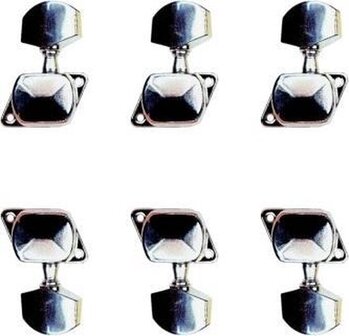 Chromen stemmechanieken voor de akoestische gitaar. Vervang je huidige stemmechanieken, of gebruik ze in je eigen bouwproject. Kwalitatieve stemmechanieken die soepel lopen en erg precies stemmen.