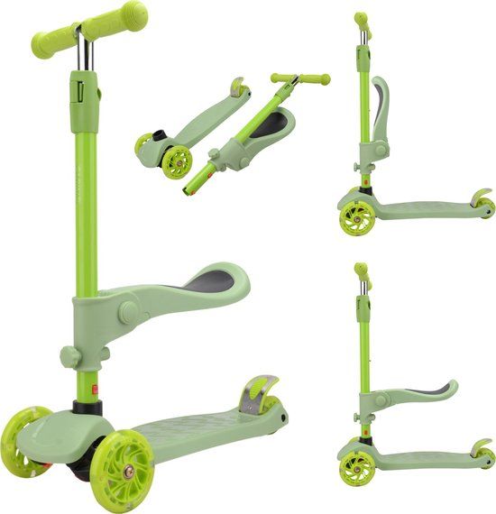 Cabino Kinderstep Met 3 Wielen - Inklapbaar & Met Zitting - Olijfgroen - Steppers