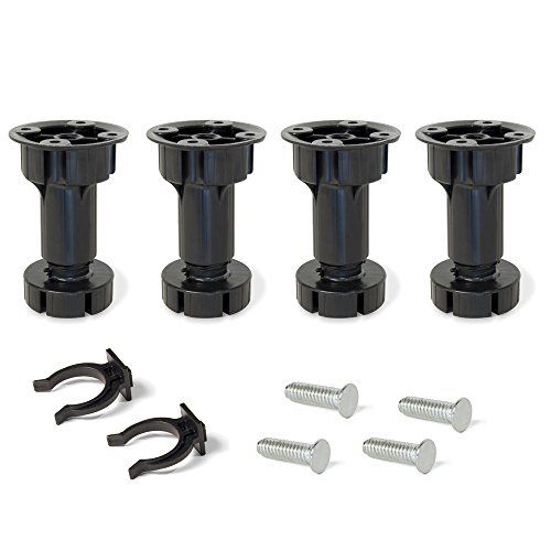 Emuca Basisvoet in hoogte verstelbaar voor keuken of badkamer, set van 4 meubelpoten verstelbaar met montagetoebehoren, H 120 mm, zwart - Steunen voor kaptafels
