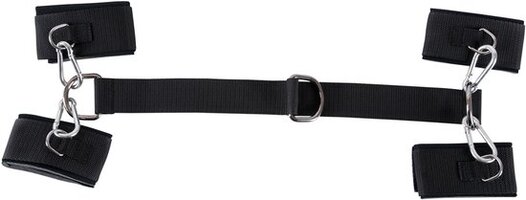 Met deze bondage harnas van Bad Kitty neem je de controle volledig over. De handen en voeten kunnen worden vastgesnoerd en zitten vast aan een streng van 43 centimeter in het midden. De banden zijn verstelbaar dus hoe stevig je partner vast komt te zitten