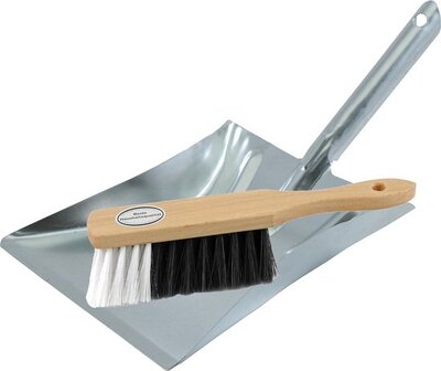 De handveger is voorzien van een ophangoog, waardoor deze gemakkelijk op valt te bergen. Materiaal stofblik: verzinkt metaal. Materiaal stoffer: hout/synthetische haren. Geschikt voor het verwijderen van droog vuil binnenshuis.