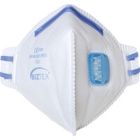 * Gevouwen stofmasker met ventiel en verstelbare neusvleugel * Beschermt tegen fijn-/giftige stoffen en (water)nevels