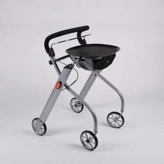 De Let’s Go indoor rollator is een lichtgewicht rollator speciaal ontworpen voor gebruik binnenshuis, zoals bijvoorbeeld in de keuken of badkamer als trolley of tafeltje. Deze rollator heeft een afneembaar dienblad waarop u bijvoorbeeld een bord of kop koffie kunt plaatsen om mee te nemen. Onder het blad kunt u een stoffen tasje hangen waarin kleine voorwerpen passen. De Let’s Go indoor rollator rijdt geruisloos over allerlei soorten vloerbedekking. Ook de rand van een vloerkleed vormt geen obstakel. De rembeugel is met één hand te bedienen. Druk de rembeugel omlaag om de parkeerrem in te schakelen en veilig te kunnen zitten en opstaan. De brede beugel zorgt ervoor dat u de rollator over de hele breedte kunt vastpakken. Over de gehele breedte is deze beugel voorzien van een zachte bekleding van rubber voor een goede grip.Inclusief dienblad en stoffen mandje.