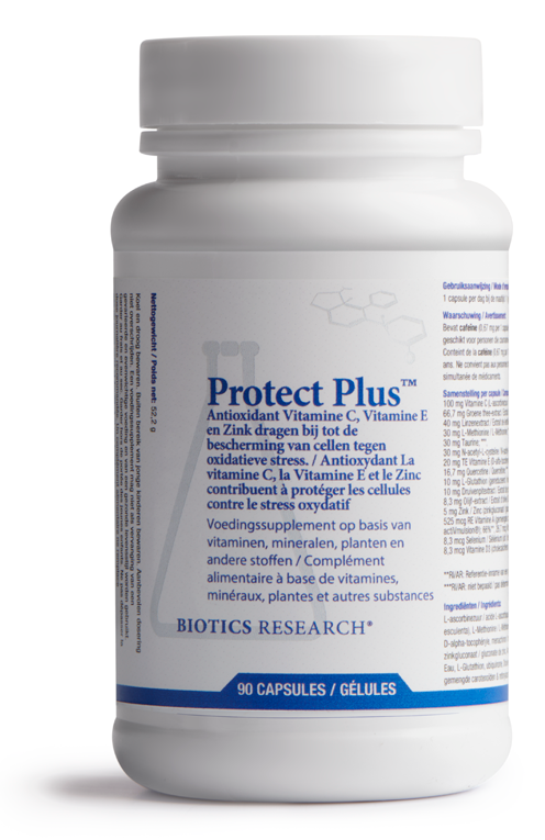 Biotics Protect Plus Capsules met een synergetisch antioxidantencomplex van zwavelhoudende aminozuren. Het bevat natuurlijke enzymatische antioxidanten: SOD en catalase. Capsule op basis van plantencultuur: vegetarisch, geen synthetische hulpstoffen en goede opneembaarheid (activbase).Dosering1 maal 1 capsule per dag bij de maaltijd. De aanbevolen dosering niet overschrijden.