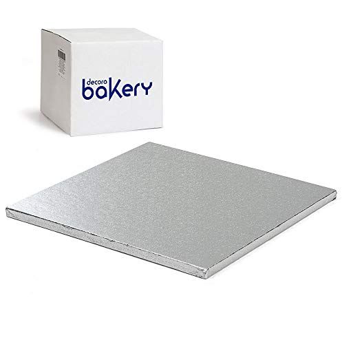 Taartonderlegger van karton met gekleurd aluminium bekleed. Masterpacks, niet afzonderlijk verpakt Maat 55 x 55 H 1,2 cm / 22 x 22 inch' Geschikt voor contact met levensmiddelen.