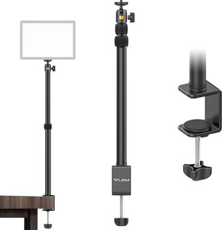 Zoek je een handig statief om je videolamp of andere accessoire op elke gewenste plek aan je bureau of tafel te bevestigen? Dit lampstatief met tafelklem van VIJIM is uitschuifbaar tot 96 cm. De klem is geschikt voor tafels en bureaus tot 5 cm dik.