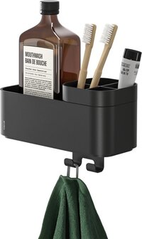 Haak voor je handdoek? Juist. Je tanden poetsen onder douche? Geen probleem. Dit opbergbakje uit de 2-Store serie is jouw antwoord op al je opbergproblemen. Afgestemd op jouw behoefte in de badkamer: multifunctioneel en een natuurtalent in opbergen. Praktisch en stijlvol in zwart.