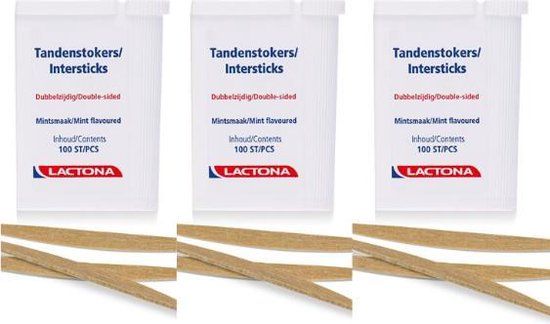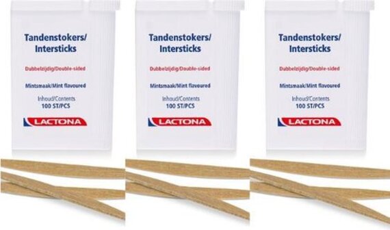 Lactona Intersticks - 3x 100 Stuks - Tandenstoker - Dun - Hout - Tandenstokers