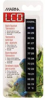 Met watertemperatuur zulk een kritische factor voor het welzijn van de vis, is het belangrijk om een ​​goede thermometer hebben. Deze Marina LCD verticale montage met vloeibare kristallen thermometer geeft nauwkeurig en eenvoudig te temperaturen lezingen in Fahrenheit en Celsius lezen. Ideaal voor alle zoet-en zoutwater aquaria, de thermometer wordt geleverd met een zelfklevende achterzijde, dat maakt montage aan de buitenkant glas gemakkelijk. Temperatuurbereiken voor dit model: 19 tot 30 C (66-88 F). Lengte: 7,6 cm (3 inch)