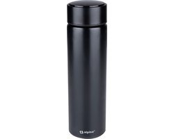 Vergeet milieuvervuilende plastic flessen en wegwerpbekers dankzij de alpina thermosfles van roestvrij staal. De isoleerfles met een maximale inhoud van 480 milliliter is perfect voor het warm of koud houden van verschillende drankjes zoals koffie, thee, water en frisdrank. De roestvrij stalen behuizing en dubbelwandige vacuüm geïsoleerde binnenkant zorgen ervoor dat koude dranken tot wel 24 uur koud en warme dranken tot wel 12 uur warm blijven. Op het digitale LED display aan de bovenzijde van de thermofles zie je in een oogopslag hoe warm of hoe koud de vloeistof in de fles is. Dankzij een SUS304 filter kun je daarnaast ook theezakjes of fruit toevoegen aan je water.