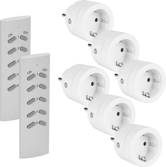 Bekijk productSEC24 HAF760S2 Draadloze Schakelaar Set - 2 Afstandsbedieningen + 6 Pluggen - Wit - Tijdschakelaars