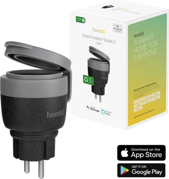 De Hombli Smart Socket Outdoor 2 is een slimme stekker die je verbindt met je smartphone. Zo zie je in een oogopslag hoeveel energie je aangesloten apparaat verbruikt. Via de Hombli app bedien je de stekker ook op afstand. Zelfs als je niet thuis bent. Zo zet je de buitenlampen of terrasverwarming van tevoren alvast aan. Koppel de Smart Socket aan Google Assistant of Alexa. Op die manier bedien je hem ook via je slimme speaker of smart home hub. Verbruikt een apparaat te veel? Stel dan via de app een schema in. Dat is goed voor het milieu én voor je portemonnee.