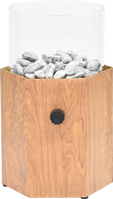 Ben jij op zoek naar een sfeerhaardje om jouw loungeset of tuinset meer sfeer te geven. Bekijk dan deze prachtige Cozy Living Bilboa gaslantaarn. De teak look kleurige gaslantaarn heeft een prachtige hexagon vorm. Met een doorsnede van 26,5 centimeter. De gaslantaarn is gemaakt van metaal en wordt geleverd met beschermglas en kiezelstenen. Het gasblikje is eenvoudig te bevestigen aan de onderkant van de gaslantaarn. Om de lantaarn aan te zetten kun je aan de knop draaien en aansteken met een lange aansteker.