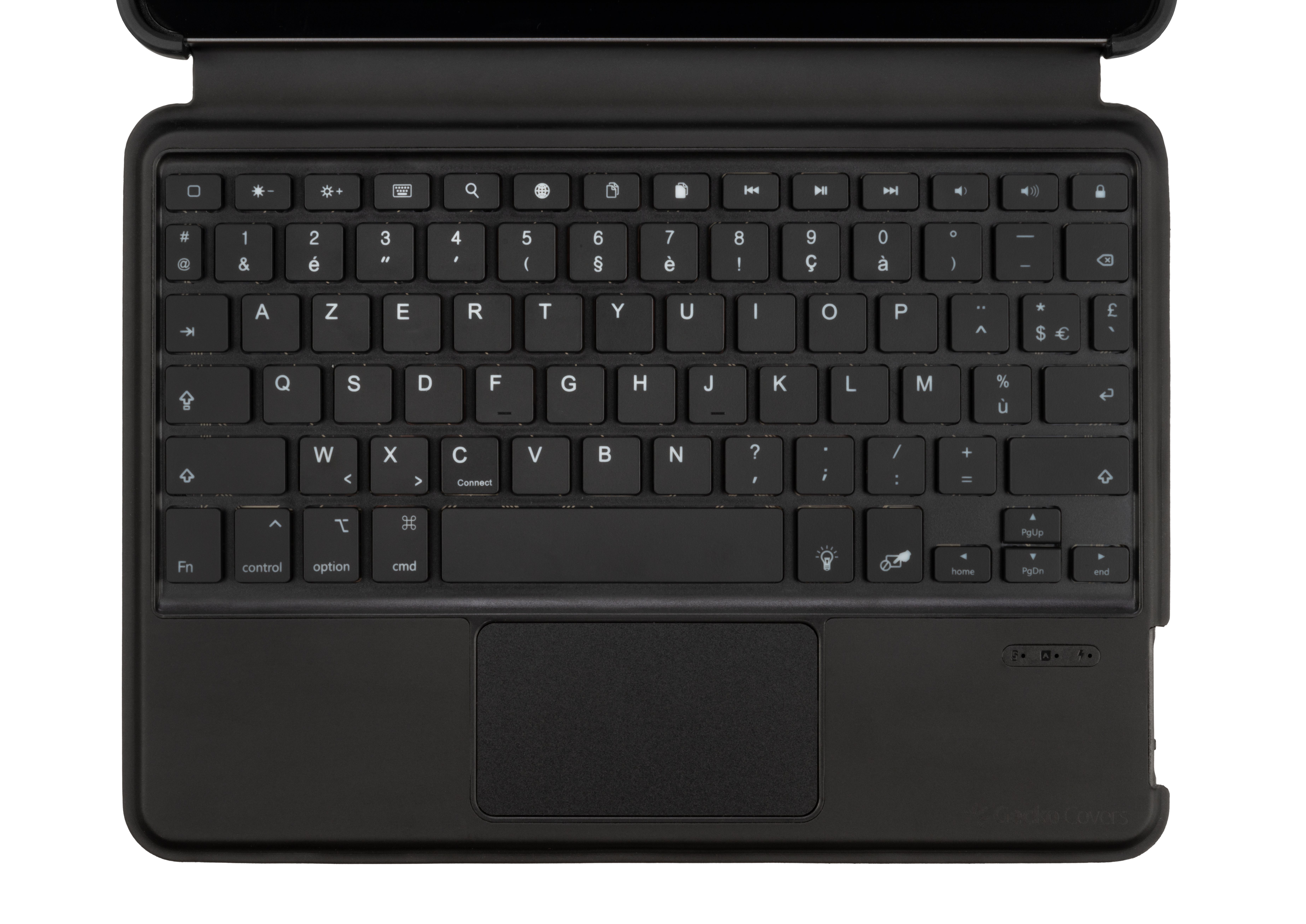 Laptop-waardig toetsenbord Het geïntegreerde toetsenbord is een genot om op te typen, en het is zelfs ontworpen om spatwaterdicht te zijn - voor het geval dat. Op een volle lading kan hij meer dan 100 uur worden gebruikt, en heeft zelfs een indrukwekkende stand-bytijd van 100 dagen. Link hem eenvoudig aan je iPad via Bluetooth en je kunt aan de slag! Productiviteitsfeatures De toevoeging van een touchpad en toetsenbordverlichting aan deze cover, maakt van je tablet bijna een laptop – ideaal voor productiviteit. Dat maakt de cover uitermate geschikt voor werk en/of studie. Ontworpen voor gebruik met een Apple Pencil De iPad Pro wordt vaak gebruikt in combinatie met een Apple Pencil, en we hebben hiermee dus ook rekening gehouden tijdens het ontwerp van deze cover. In de op maat gemaakte houder kun je eenvoudig je Apple Pencil vastklikken en opladen. Hij zit hier stevig op zijn plaats zodat je hem niet per ongeluk verliest. Kies je kijkhoek De geïntegreerde neerklapbare standaard biedt een stevige ondersteuning voor je iPad, en stelt je in staat om de perfecte kijkhoek te kiezen. Dit verbetert de ergonomie aanzienlijk doordat je nek minder wordt belast.