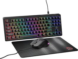 De gaming muismat in deze bundel is ontworpen om te werken met alle soorten muizen en sensoren. Dankzij het antislip rubberen onderkant blijft de muismat stevig op zijn plek, zelfs tijdens de meest intense gamesessies. Met een afmeting van 310x250x3 mm biedt de muismat voldoende ruimte voor vloeiende en nauwkeurige bewegingen.