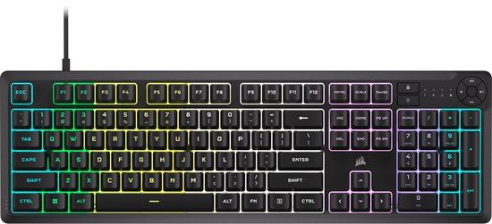 Het CORSAIR K55 CORE-gamingtoetsenbord helpt je op weg naar de overwinning. Verlevendig je gamesessies met totaal aanpasbare RGB-verlichting in tien zones. Je kunt ze in CORSAIR iCUE programmeren voor je persoonlijke lichtshow, terwijl je de overwinningen aaneenrijgt. Stille, responsieve membraanswitches maken dat je in elke setting kunt typen, chatten en spelen. Behoud de controle met vier speciale mediaknoppen, waarmee je volume en playback aanpast zonder de actie te onderbreken. Morsbestendigheid tot 300 ml voorkomt dat een gemorst drankje je spannendste momenten verpest. De K55 CORE biedt je alles wat je nodig hebt om je winning
