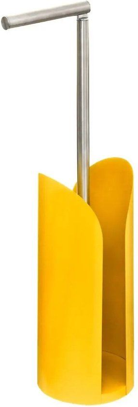 5five Staande wc/toiletrolhouder geel met reservoir en flexibele stang 59 cm van metaal - Wc-rol houder - Toiletrol houder - Toiletpapierhouders