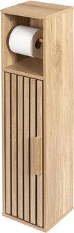 Voeg functionaliteit en stijl toe aan je badkamer of toilet met het MISOU Toiletkastje. Dit veelzijdige kastje combineert opslagruimte met een toiletrolhouder en een staand ontwerp, waardoor het perfect is voor kleinere ruimtes. Gemaakt van hout, voegt dit kastje een warme en natuurlijke uitstraling toe aan je interieur.