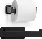 QUVIO Dubbele toiletrolhouder - Met legplank - Zwart - Metaal - 33 x 10 x 12.5 cm