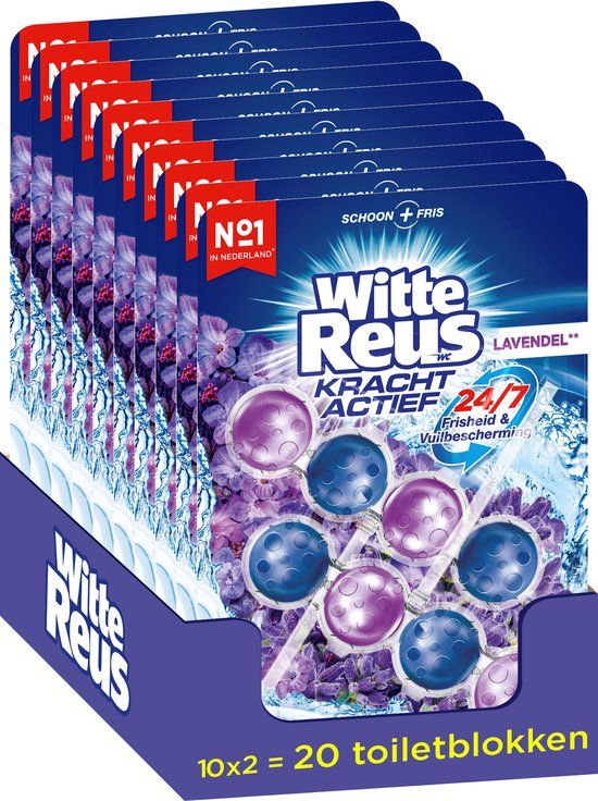 Ervaar de kracht van een sprankelend schoon toilet met het Witte Reus toiletblok Kracht Actief Lavendel! Dit innovatieve product biedt langdurige reiniging en zorgt voor een zichtbare glans bij elke spoelbeurt. De blauwe ballen activeren de effectieve for