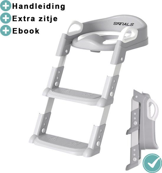 SNTIALS - WC Verkleiner met Trapje - Potje Peuter - Trainer - Opvouwbaar - 2 tot 7 jaar - Grijs/Wit - Toiletversiering