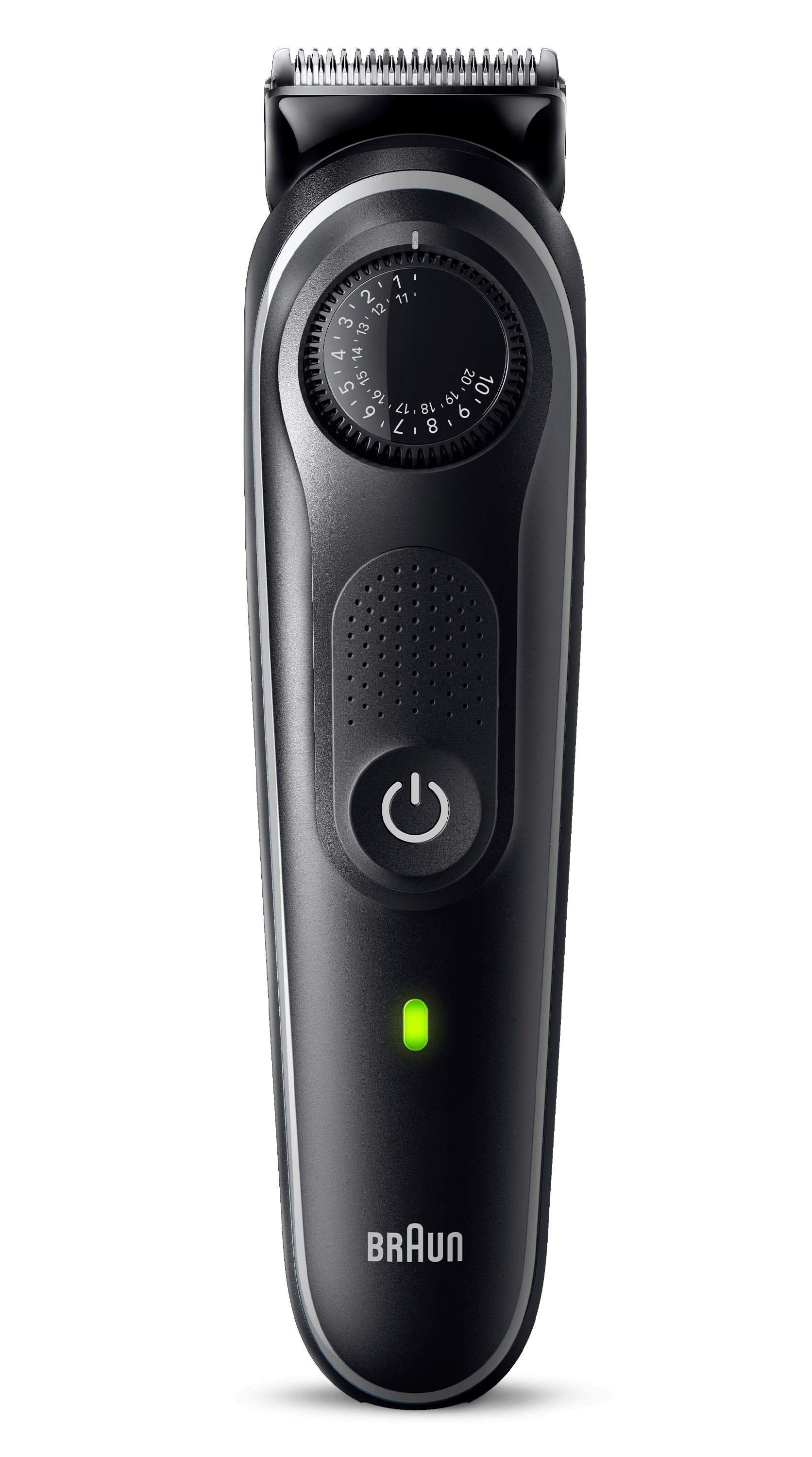 Krijg thuis resultaten van kappersniveau met de Braun Series 5 baardtrimmer. Precisie bij elke beweging met ultrascherpe scheerbladen voor een gelijkmatig getrimde baard. Precisiedraaiknop met 40 lengte-instellingen. 100 minuten draadloos gebruik. Inhoud doos:1x baardtrimmer incl. plastic trimopzetstuk1x kam voor details 1x precisie-baardkam (0,5-10 mm) 1x precisie-haarkam (10,5-20 mm) 1x minischeerapparaat1x reinigingsborsteltje 1x etui