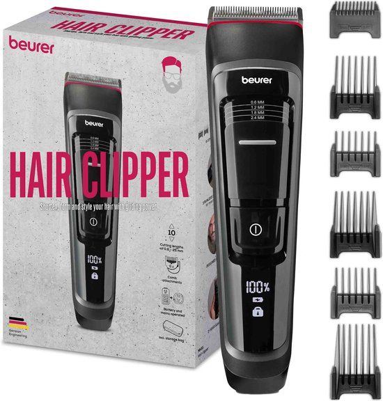Met de Beurer MNX5 tondeuse kun je thuis een professioneel kapsel realiseren. De 6 meegeleverde opzetstukken zorgen voor de juiste haarlengte. Met 6 instelbare scheerlengtes (3-25 mm) en een fijnafstelling in 4 standen (0.6/1.2/1.8/2.4 mm) is de MN5X je perfecte reisgenoot voor thuis en onderweg. Een praktische opbergtas is inbegrepen.