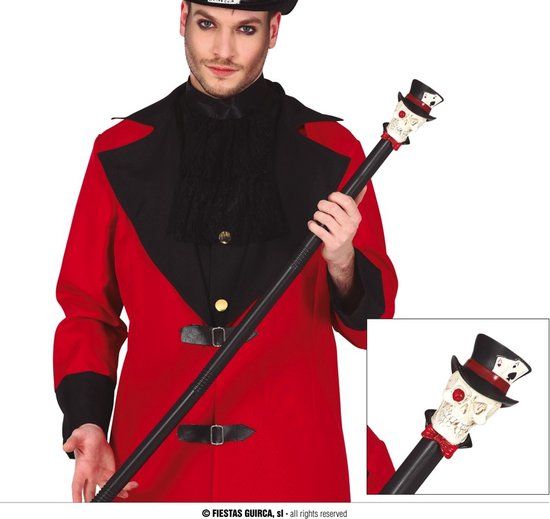 Halloween Wandelstok Doodskop met Hoge Zwarte Hoed van PVC en met een lengte van 85 cm