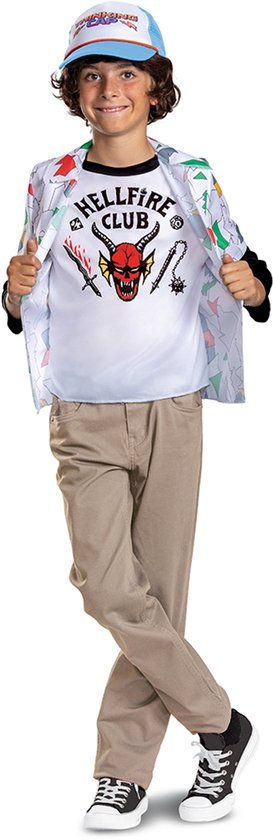 Zet je Denkpet op en word een van de meest geliefde Stranger Things-personages in deze Dustin Kinderkostuumset! Deze set bevat een gesublimeerd shirt met kleurblokken, een bijgevoegd ondershirt en een bijgevoegd Hellfire Club-T-shirt. Dustins kenmerkende Denkpet is ook inbegrepen om zijn seizoen 4-look compleet te maken! Broek en schoenen niet inbegrepen.