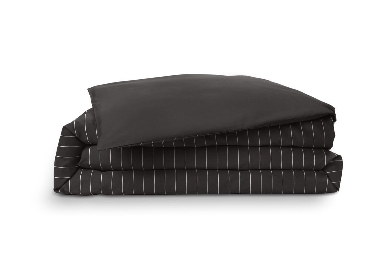 Emma Satijn Dekbedovertrek - 200x200 cm - Donkergrijs met Strepen & Witte Lijnen - Traagschuimmatrassen