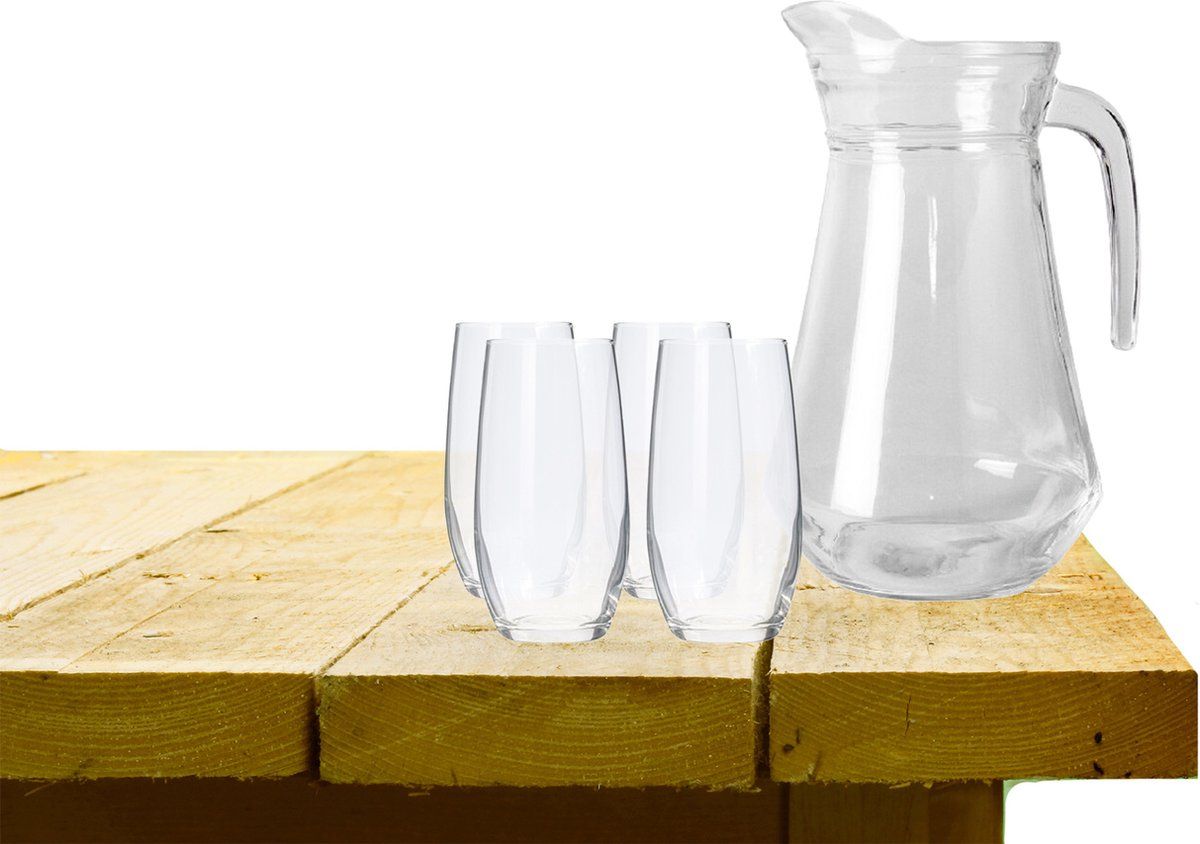 Waterkaraf schenkkan glas 1000 ml met 4 drinkglazen 360 ml - transparant - Tumblers