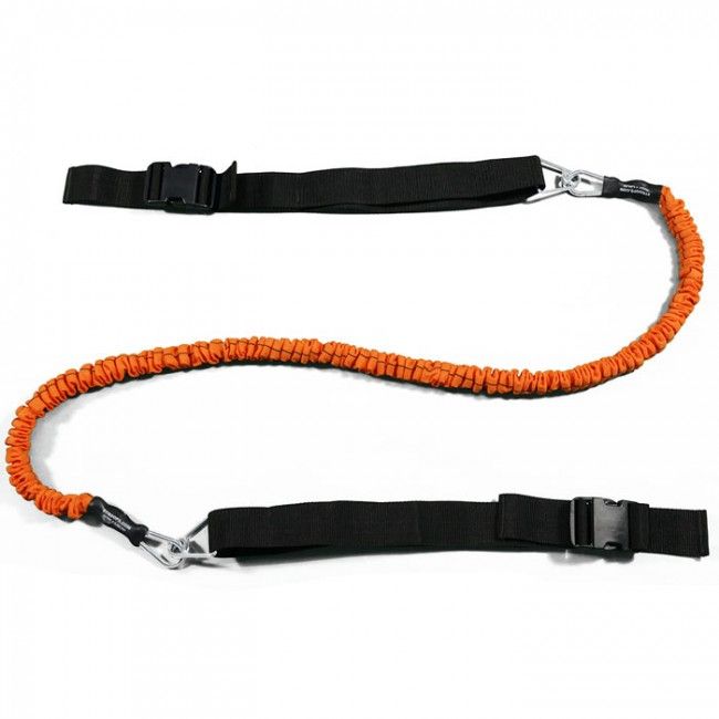 1x Slastix Toner Tubing (1,22 m zwaar blauw), 2x Swivel riemen (draaigordels). Voortdurend en afwisselend passeren en hardlopen met weerstand. De Slastix is aan twee Swivel riemen bevestigd waardoor de atleten elkaar voorbij kunnen lopen.