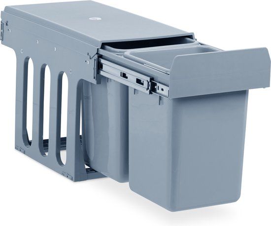 Relaxdays Inbouw Prullenbak Keuken - 16L - 2 Vakken - Grijs/Zilver - Uittrekbare vuilnisbakken