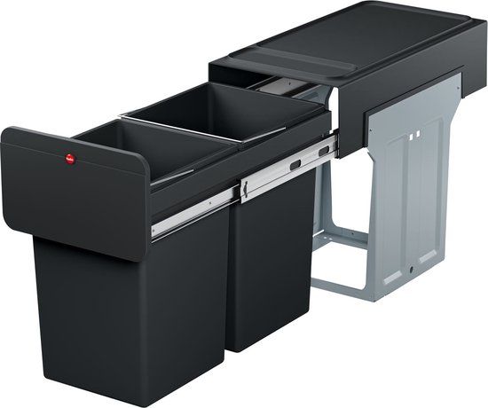 Hailo Tandem - Inbouw Prullenbak - 28 Liter - 2 Compartimenten - Zwart - Uittrekbare vuilnisbakken