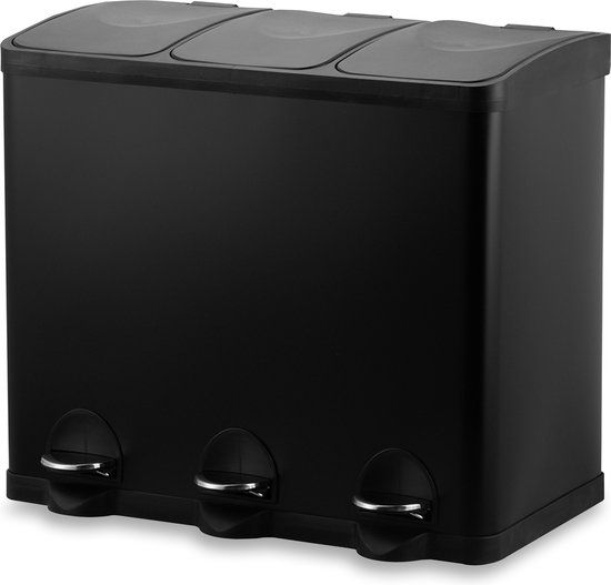 Bayt Prullenbak - Pedaalemmer 60 Liter - 3 Vakken - RVS - Zwart - Uittrekbare vuilnisbakken