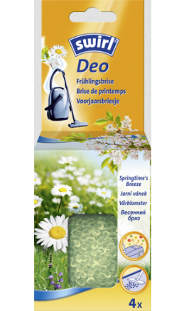 Spring breeze when you want it\nWith Swirl® vacuum cleaner Deo Pearls Springtime's Breeze you bring a spring feeling into your home, even if its wintery outside.\nWith an attractive fragrance even vacuuming becomes a pleasant experience. Thoughts of a fresh spring breeze lead to dreaming and awaken pleasant feelings. Swirl® vacuum cleaner Deo-Pearls Springtime's Breeze are simply vacuumed up into the bag and release their beneficial effects immediately.