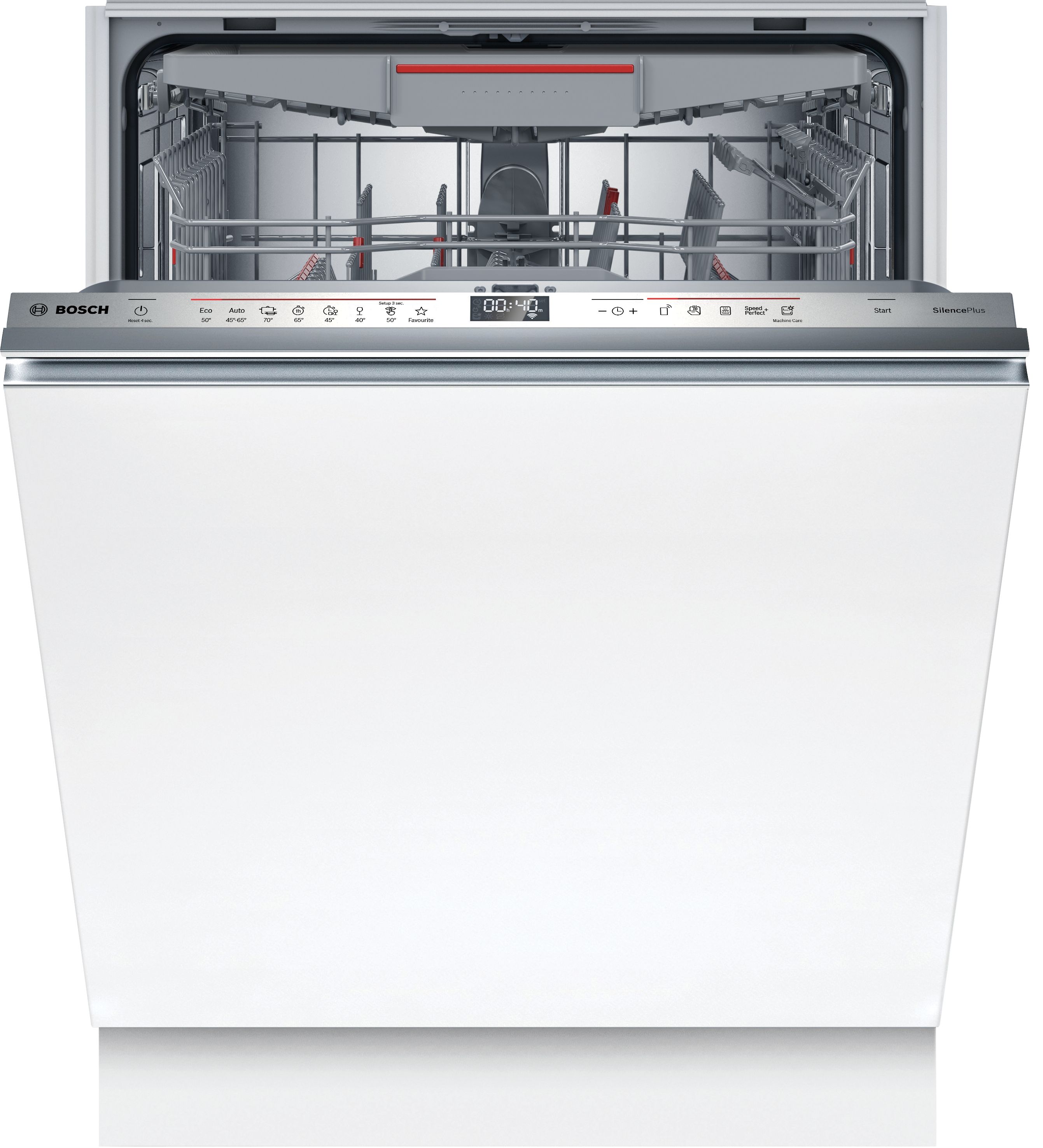 Nog een pluspunt: de Bosch SBD6ECX00E is intelligent en gebruiksvriendelijk. De elektronische bediening biedt eenvoud en nauwkeurigheid, met de handige optie van een startvertraging tot 24 uur. Dit betekent dat je in kunt stellen wanneer de machine begint met schoonmaken - bijv. tijdens daluren om te besparen op energie. De vaatwasser heeft ook een handige resttijd indicatie.Overige specificaties
