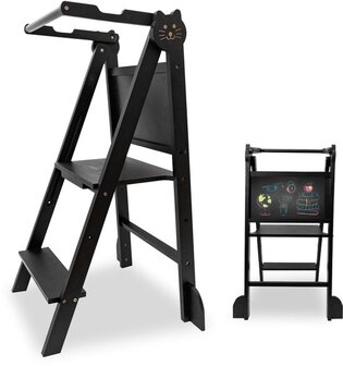 Oemmie Leertoren - Opvouwbaar - Learning Tower - Montessori Leertoren met Krijtbord - Leertoren keukenhulp - Leer Toren - Opstapje - Kindertrapje - Zwart - Veiligheidsrails voor trappen
