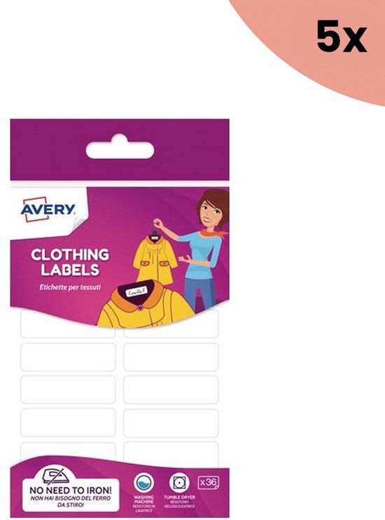 5x Avery Textiel Etiketten - 36 stuks - Wit