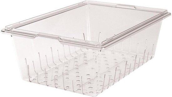 Dit 12,7cm diepe vergiet van Cambro heeft verschillende toepassingen. Omdat de bak voorzien is van gaten kunt u er namelijk zowel producten in afspoelen, uit laten lekken en bewaren. Dat maakt de bak ideaal voor het uitlekken van fruit en groente, het laten ontdooien van vlees en gevogelte en het bewaren van vis en zeevruchten op ijs. De bak kan eenvoudig opgetild worden zodat vloeistoffen snel een hygiënisch weggegoten kunnen worden.Gemaakt van duurzaam polycarbonaat. Met gaten in de bodem voor het uitlekken. Ideaal voor het bewaren van bulkproducten en ingrediënten. Helpt de kans op kruisbesmetting te verkleinen. Doorzichtig zodat de inhoud goed zichtbaar is. Glad oppervlak is eenvoudig te reinigen