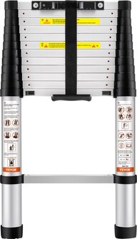 VEVOR Telescopische ladder, Uitschuifbaar 380 cm, 170 kg, Antislipbeveiliging - Verlengladders