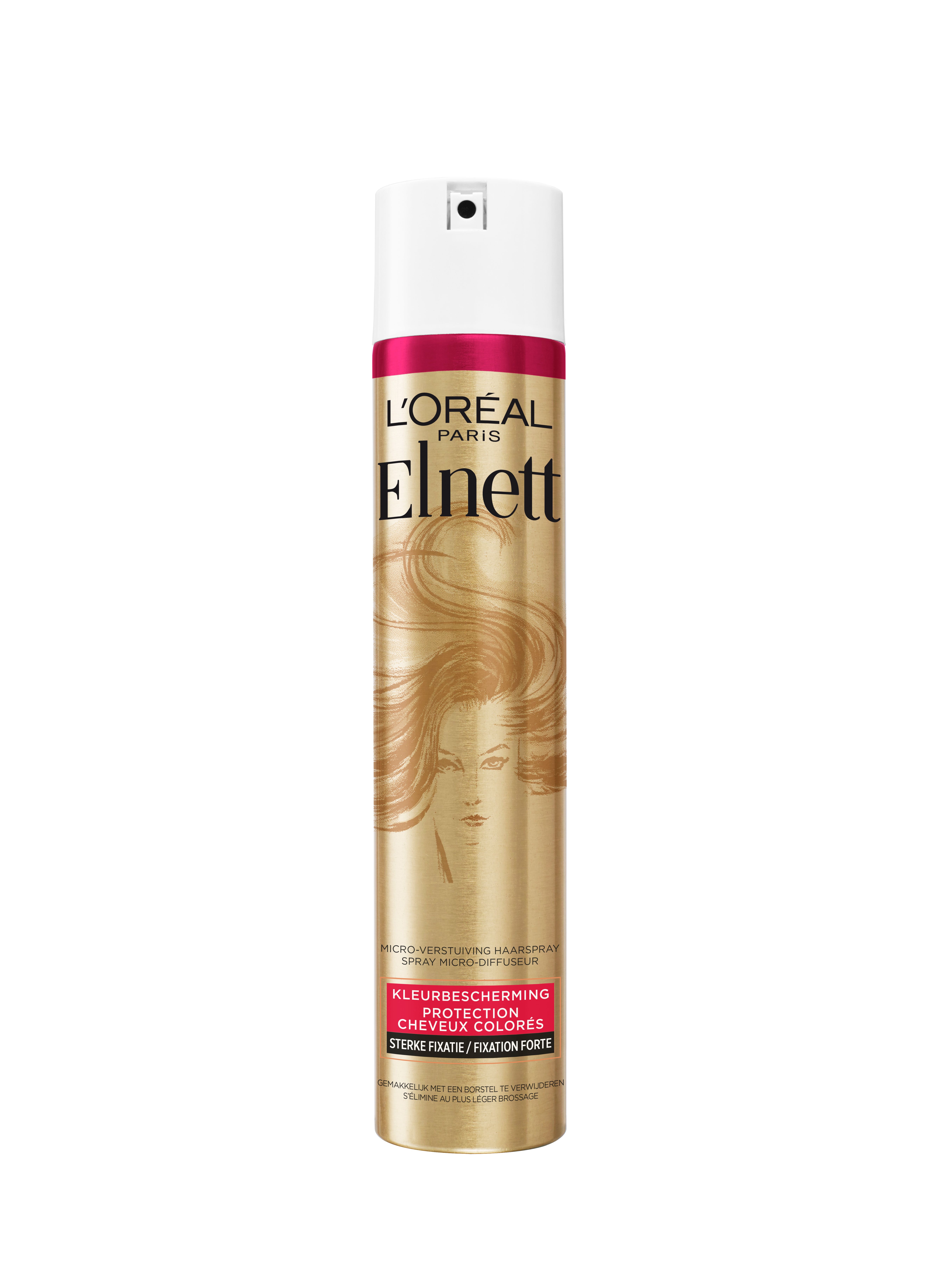 Het product\nDe volledige sterke houdbaarheid en finesse van Elnett Satin aangepast aan de specifieke behoeften van gekleurd haar.\n\nHet resultaat\n- Houdt uw kapsel volkomen natuurlijk in model\n- Behoudt de glans van uw kleur\n- Beschermt uw kapsel tegen vochtigheid\n- Laat zich gemakkelijk door borstelen verwijderen\n\nHoe te Gebruiken?\nOngeveer op 30cm van het kapsel verstuiven: de micro-verstuiver verzekert een ultrafijne verstuiving en een zeer gelijkmatige verdeling van de haarspray over het haar.\n\nIngrediënten\nALCOHOL DENAT. • DIMETHYL ETHER • VA/CROTONATES/ VINYL\nNEODECANOATE COPOLYMER • TOCOPHEROL • HYDROXYCITRONELLAL • PEG/PPG-4/12\nDIMETHICONE • ETHYLHEXYL METHOXYCINNAMATE • AMINOMETHYL PROPANOL •\nLIMONENE • LINALOOL • BENZYL ALCOHOL • BENZYL BENZOATE • PENTAERYTHRITYL\nTETRA-DI-T-BUTYL HYDROXY- HYDROCINNAMATE • ALPHA-ISOMETHYL IONONE •\nGERANIOL • CITRONELLOL • BHT • COUMARIN • GLYCINE SOJA OIL / SOYBEAN OIL •\nAMYL CINNAMAL • PARFUM / FRAGRANCE. (F.I.L. C199293/1).