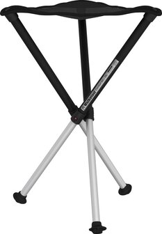 Walkstool Steady is made with three kinds of users in mind:\n- People using Walkstool outdoors with the risk of having the rubber feet sinking into the ground – typically hunters.\n- Professional users working on slippery surfaces with the need of making Walkstool even more sturdy and reliable.\n- Big people in need of a portable seat that will hold their weight for years to come.\nWalkstool Steady can be used with all Walkstool Comfort models and is normally being delivered pre-set for being used with Walkstool Comfort 55cm/22in. This setting can easily be changed by the user according to the Walkstool model.\n\nThe Walkstool is available in two model types Comfort and Basic. It comes with two seat heights ranging from 45cm/18in as in a normal chair, and to 75cm/30in to accomodate for hunters, tall people, people with problem with back and/or disc and not to forget Big People.\n\nThe Walkstool Comfort 45cm/18in, Walkstool Comfort 55cm/22in, Walkstool Comfort 65cm/26in and Walkstool Comfort 75cm/30in are for people who like to feel very comfortable when they sit down.\nThe seats are approximately 40%, 60% and 80% bigger than a normal seat for a three legged stool. The taller the stool, the bigger the seat size.\n\nTo lock lower legs when not using Walkstool Comfort models, twist the legs so they are locked by the rubber feet being close together. To use Walkstool Comfort models, do the opposite and you unlock the lower legs.\n\nBe careful when sitting on the Walkstool on uneven ground. Avoid to put all pressure on one or two lower legs. Improper use of the Walkstool can result in bodily injury or harm. Always check the Walkstool before using it to make sure that the red button is in the proper locked position. User assumes all responsibility for use and operation of the Walkstool.