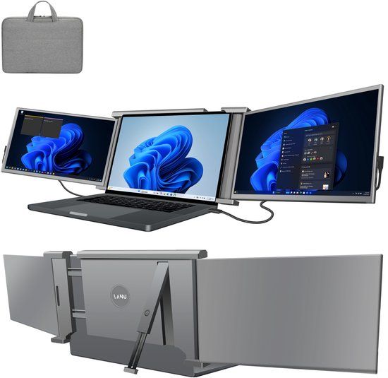Lanu Triple Portable Monitor Expert 14" MultiCable - IPS Tri screen - Extra scherm laptop - Plug & Play - Incl. draagtas - Vervangende schermen voor laptops