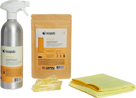 De keukenontvetter (degreaser) van Ecopods is een extra krachtige en milieuvriendelijke onvetter voor het verwijderen van hardnekkig vuil en vetten op hard en RVS oppervlaktes. Laat vettige oppervlaktes weer schijnen. Deze complete milieuvriendelijke startersset keukenontvetter van Ecopods zorgt ervoor dat je de komende 9 maanden jouw keuken krachtig, ecologisch en zero waste kunt schoonmaken.